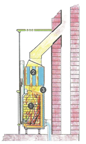 Heizgerät mit festem Kesselanteil Wärmeaufteilung: Fester Kesselanteil: 60 % Über Scheibe: 30 % Heizgerät: 10 % |